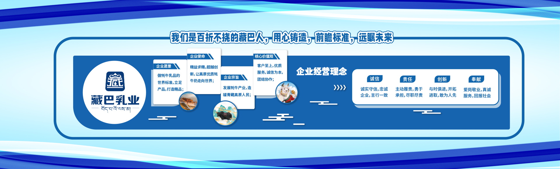青海藏巴乳业有限公司是青海重点扶持企业,公司奉行“发展牦牛产业、造福青藏高原人民”的宗旨,采用“公司+牧户+基地”的运作方式,以藏区农牧民脱贫致富奔小康为己任,依托青藏高原丰富的牦牛资源,坚持科技创新为先导,资源可持续利用,生态绿色环保的经营理念,以铸造民族强盛之奶为企业的不懈使命和不竭动力,坚持牦牛奶生产加工规模化,经营管理效益化,市场营销国际化发展模式,致力于高端牦牛奶系列产品开发,资源可持续综合利用,开拓具有中国特色的高端特种乳业发展之路。